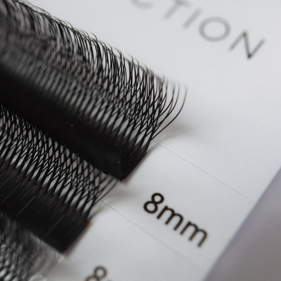 Each tray features 5D premade narrow fans crafted in a unique “W” shape using premium .07 PBT fibers. These lashes are ultra-soft, lightweight, and jet black for a flawless finish every time.